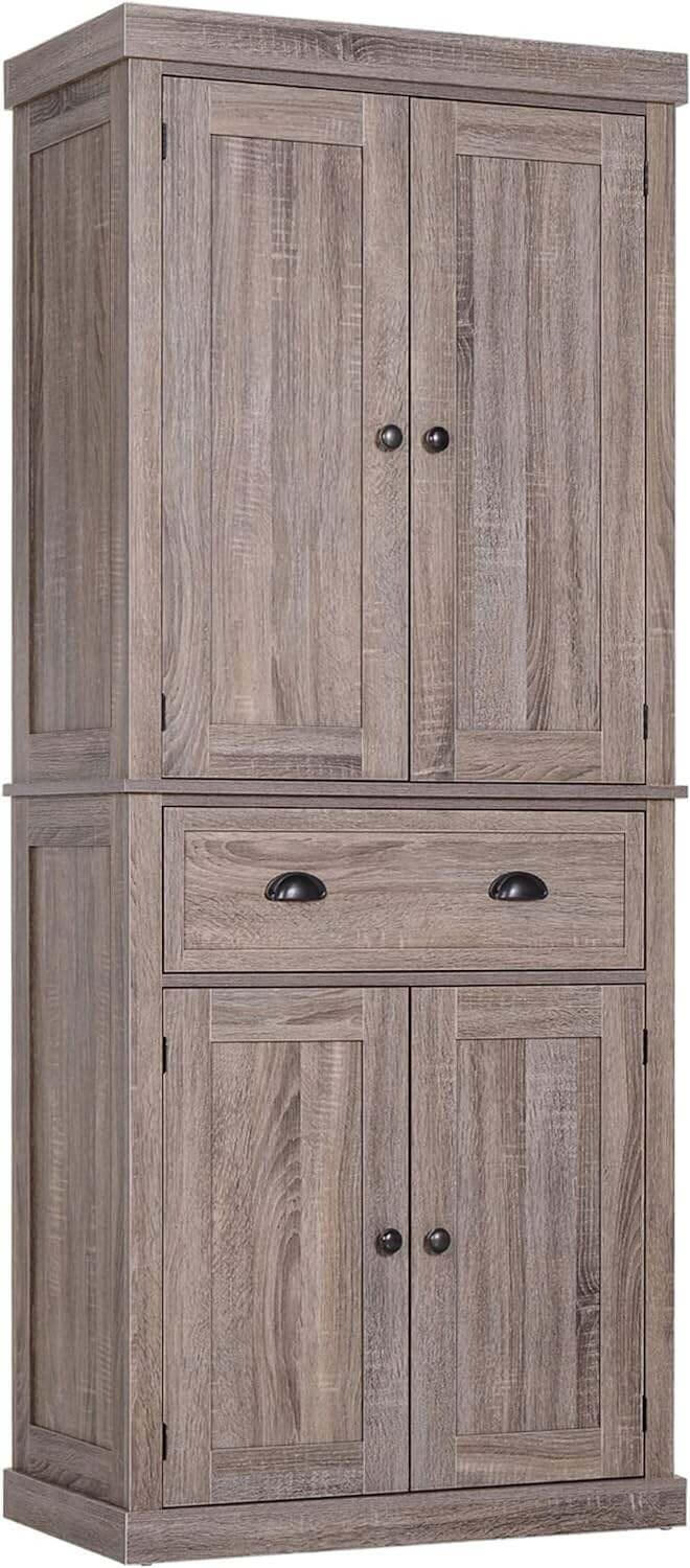 72" Traditional Freestanding Kitchen Pantry Cupboard with 2 Cabinets