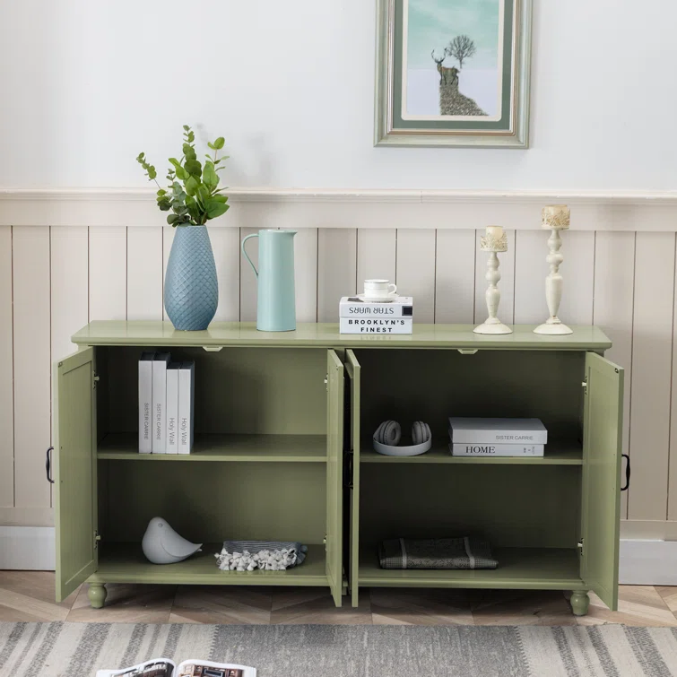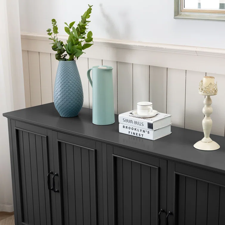 - The buffet sideboard can be adjusted at three different height positions, and they can be removed as well. In that case, this cabinet can accommodate many items of different sizes.