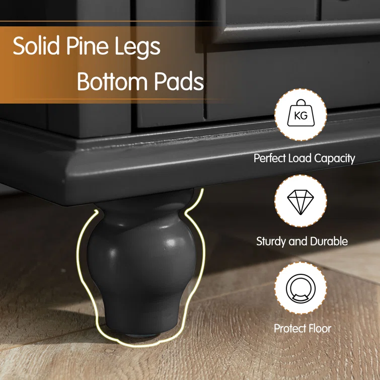 - 4 Bun foot adds an elegant leg made of pine to increase the height of the buffet cabinet, making it strong enough to support it.