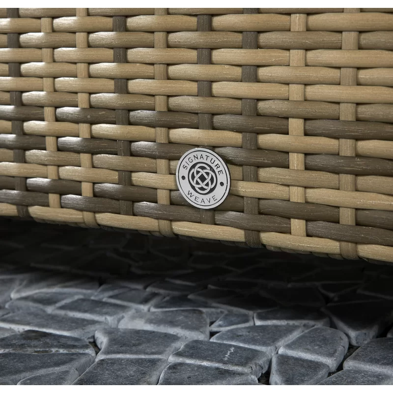 - The wicker is manmade and weather-resistant, but also UV resistant. The frame is powder-coated steel and is weather resistant.