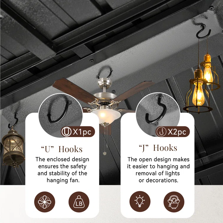 - Vented Double Hardtop: Compared to a single-layer design, this double gazebo canopy allows sunlight to filter through and provides excellent airflow. The galvanized steel metal top can withstand heavy snow, ensuring privacy, safety, and a cool room.