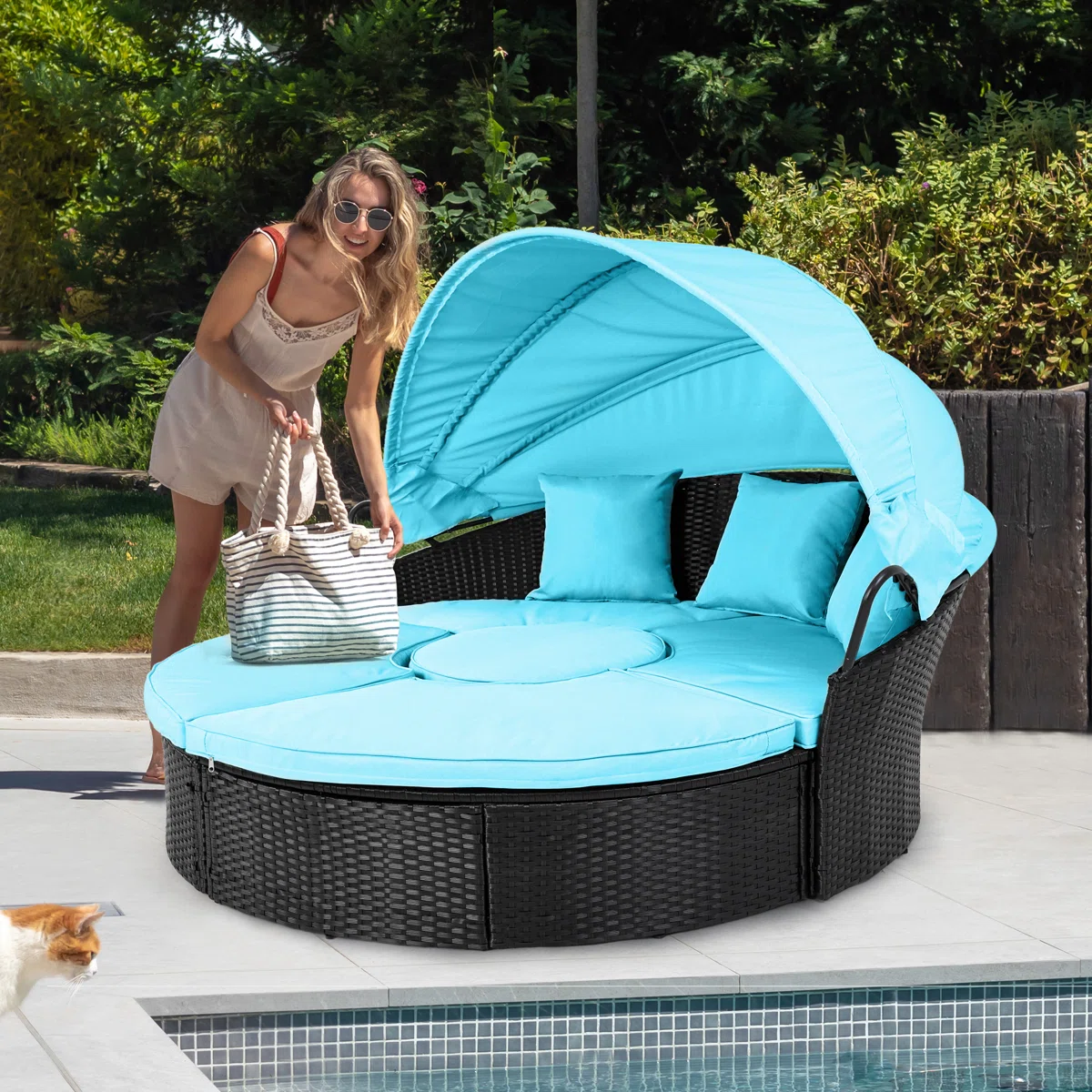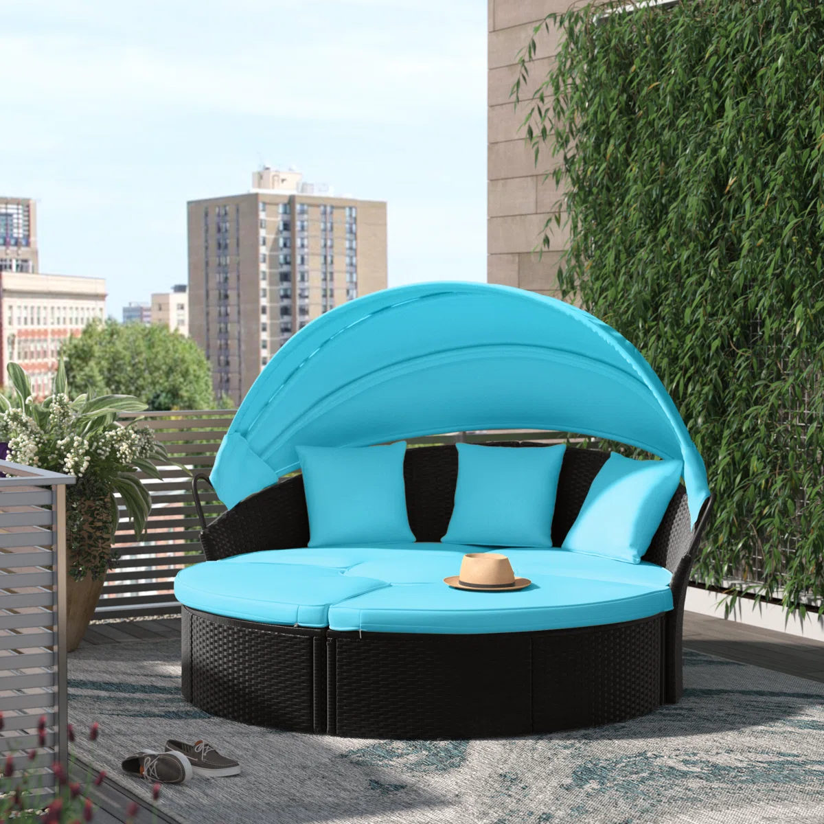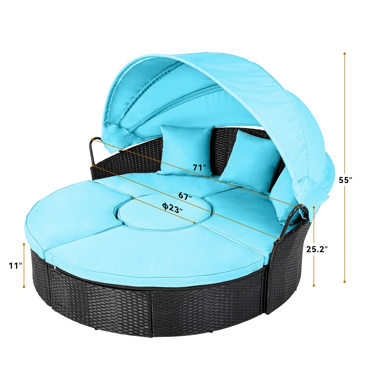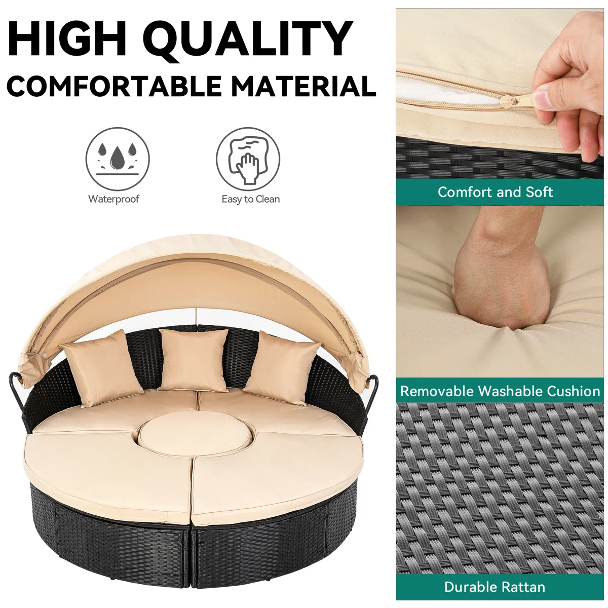 - Retractable sunshade canopy: our outdoor patio daybed set comes with a telescopic pull rod which allows the canopy can be adjusted freely. No matter whether you wanna enjoy the sunbath in the warm sunshine or enjoy the cool in the hot weather, it can meet all your needs. What you need to do is just close or open the canopy.