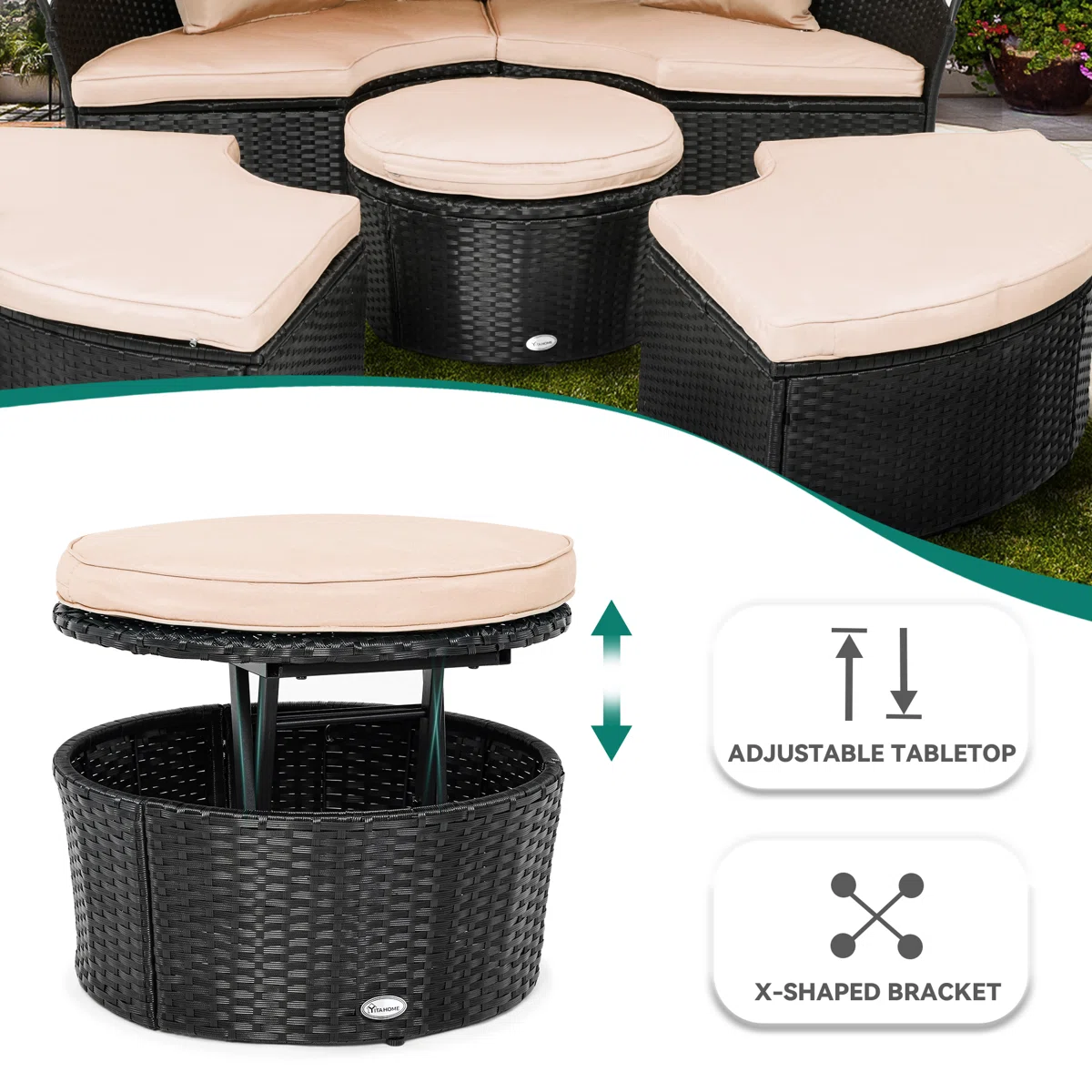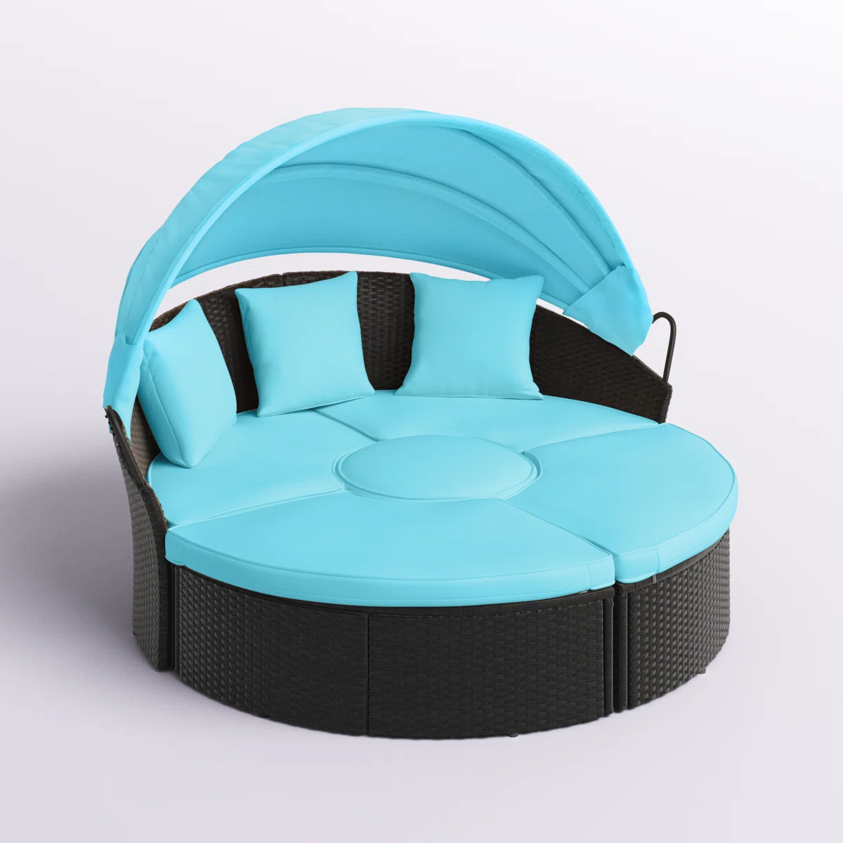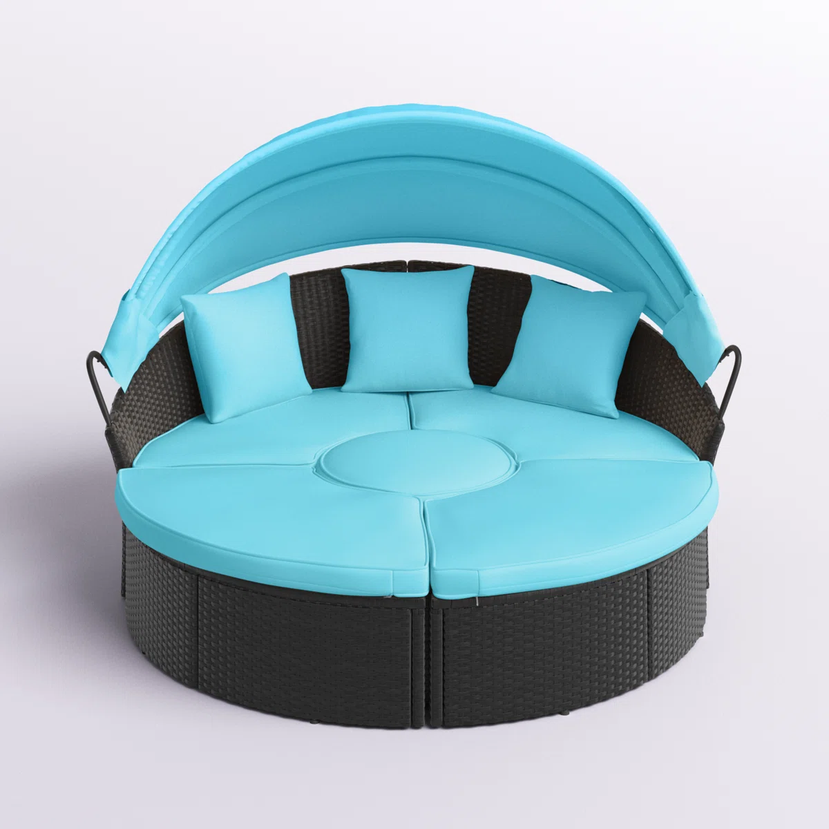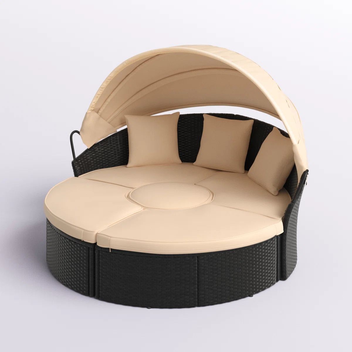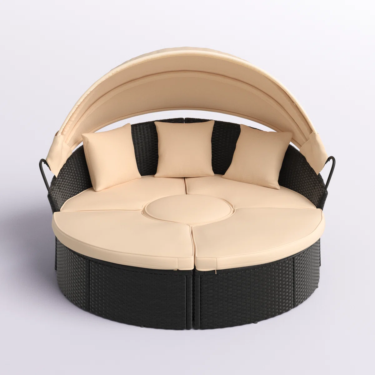 Product Type Patio Daybed Seat Frame Material Polyethylene (PE) Wicker Modular No Bed Base Shape Round Seating Capacity 4 Cushions Included Yes Cushion Cover Material Polyester Removable Cushions Yes Removable Cushion Cover Yes Cushion Fill Material Foam Canopy Included Yes Imported Yes Weight Capacity 250 lb. Durability Weather Resistant Closure Method Zipper Frame Color / Finish Black Number of Cushions Included 1 Pieces Included Daybed, Cushion(s) Cushion Durability Water Resistant, Mold / Mildew Resistant, Fade Resistant, Stain Resistant, UV Resistant