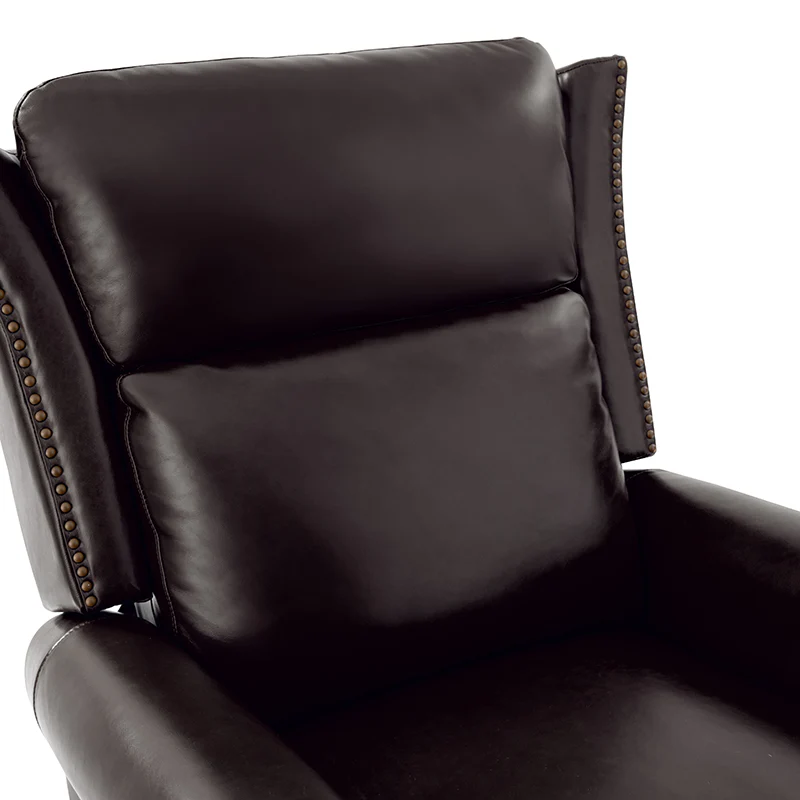 This genuine leather recliner is a suitable addition to your living room or bedroom, offering both style and comfort. Crafted from premium waxed leather, this traditional-style manual recliner exudes classic elegance. The genuine leather finish is complemented by rolled arms and vintage nailhead trims, adding a touch of sophistication to your home decor. Designed for relaxation, this recliner features a swivel and rocking function, allowing you to move effortlessly and find a comfortable position. The manual reclining mechanism is easy to operate, enabling you to lean back and unwind after a long day. This piece provides lumbar support for enhanced comfort, ensuring proper support and reducing strain on your lower back. Whether you¡¯re reading, watching TV, or simply lounging, this recliner is apt to be your favorite spot in the house.