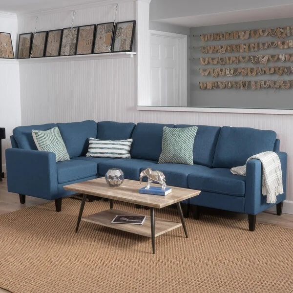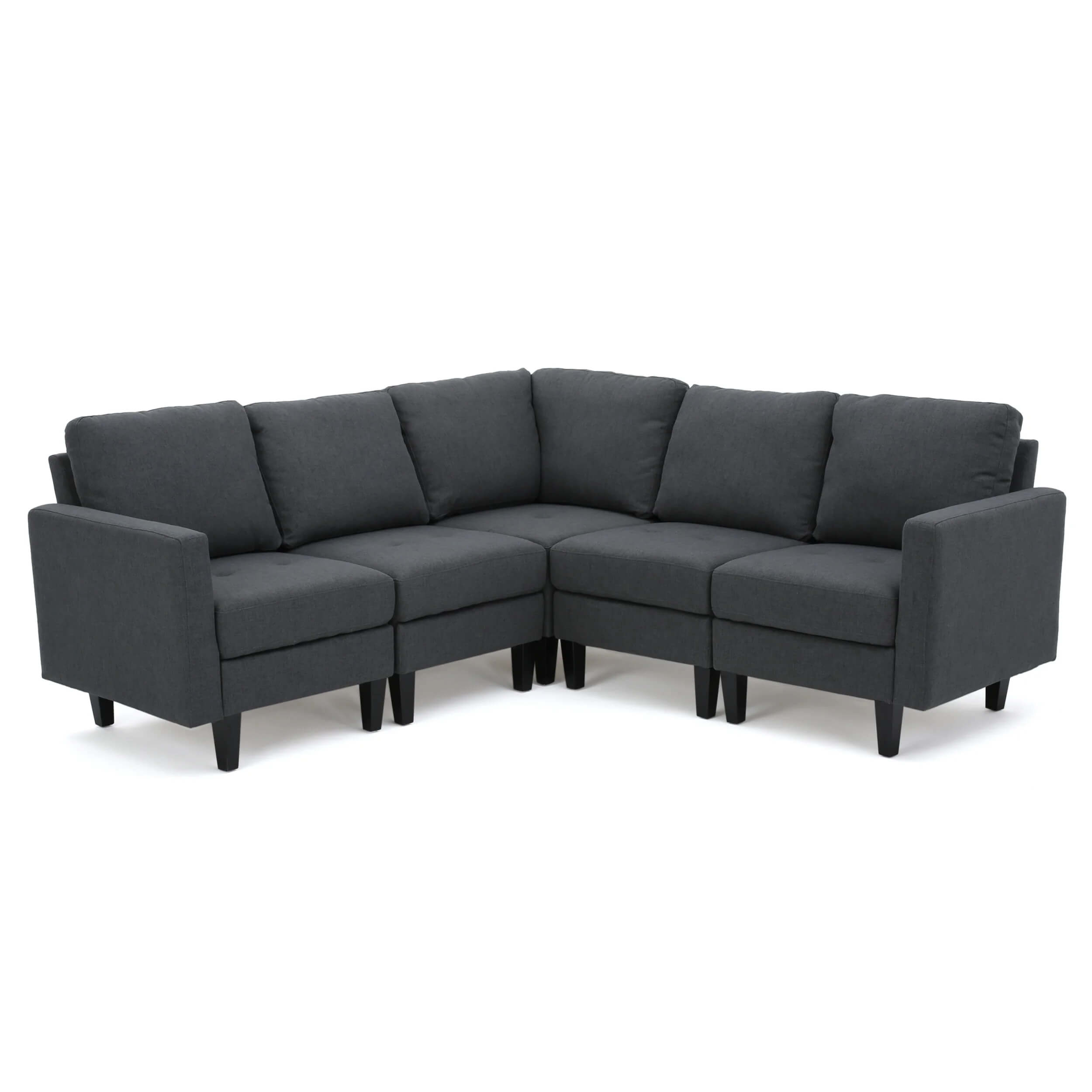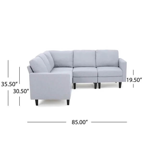 Provide plenty of seating with this 5-piece fabric sofa sectional. Available in four different color options, this set features attached hook-and-loop cushion seats. Featuring five individual pieces that fasten securely together with locking hooks, this Zahra sectional set allows for flexible seating arrangements and repositioning. The seat covers zip off for easy cleaning.