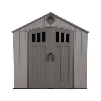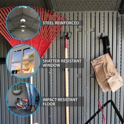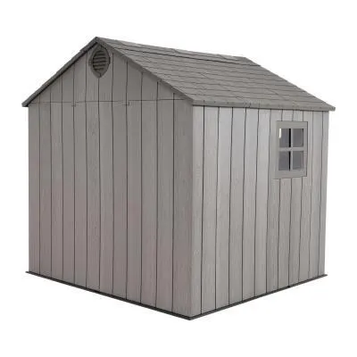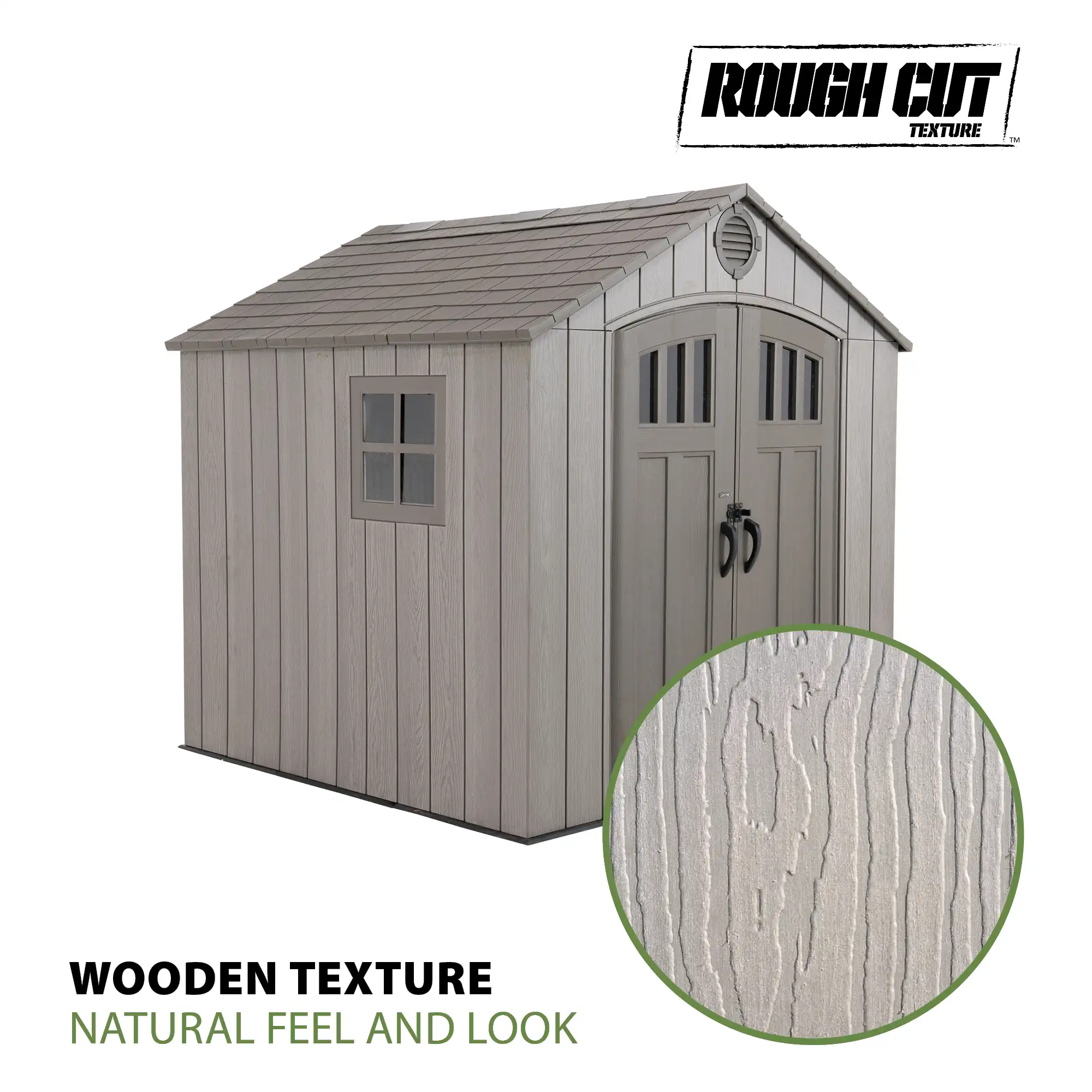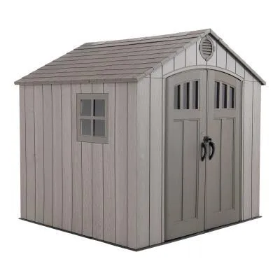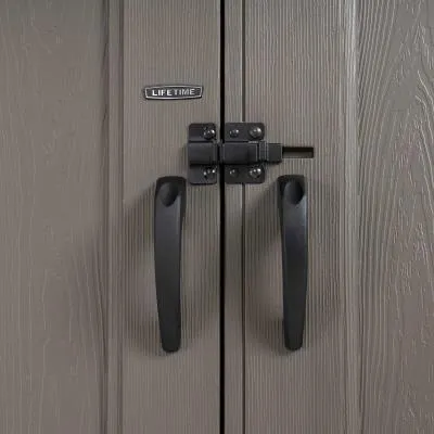 Organizing your home and yard doesn’t need to be a difficult task. With the right storage solution, you can declutter your garage and better organize your belongings. Lifetime’s 8 foot by 7.5 foot Rough Cut™ Shed is a stylish storage solution that is strong, secure, and easy to maintain. The Rough Cut™ Texture has the natural look and feel of wood without the maintenance of painting or staining. The double-wall construction and steel-reinforcement offers incredible strength for long-lasting performance. The shed is UV-protected and weather-resistant to withstand the elements. The shelf and removable wall hooks give you more options for storing items throughout the shed. Skylights and windows provide excellent interior lighting. Lifetime’s outdoor storage sheds allow you to free up space in your garage and home.