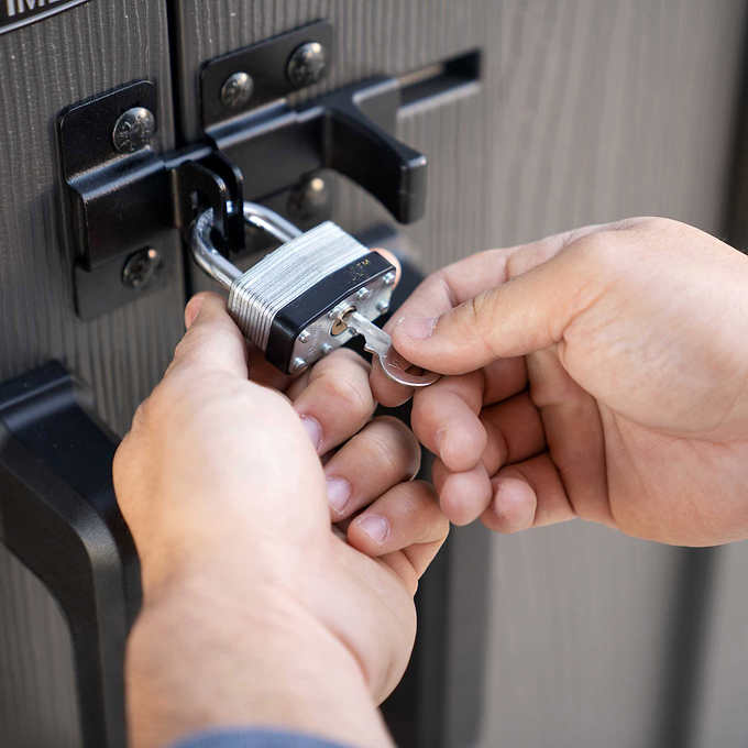 - Slider Latch Locking System with Padlock Loops (lock not included)