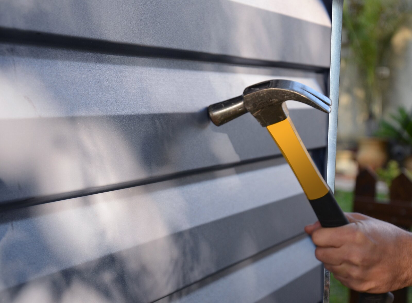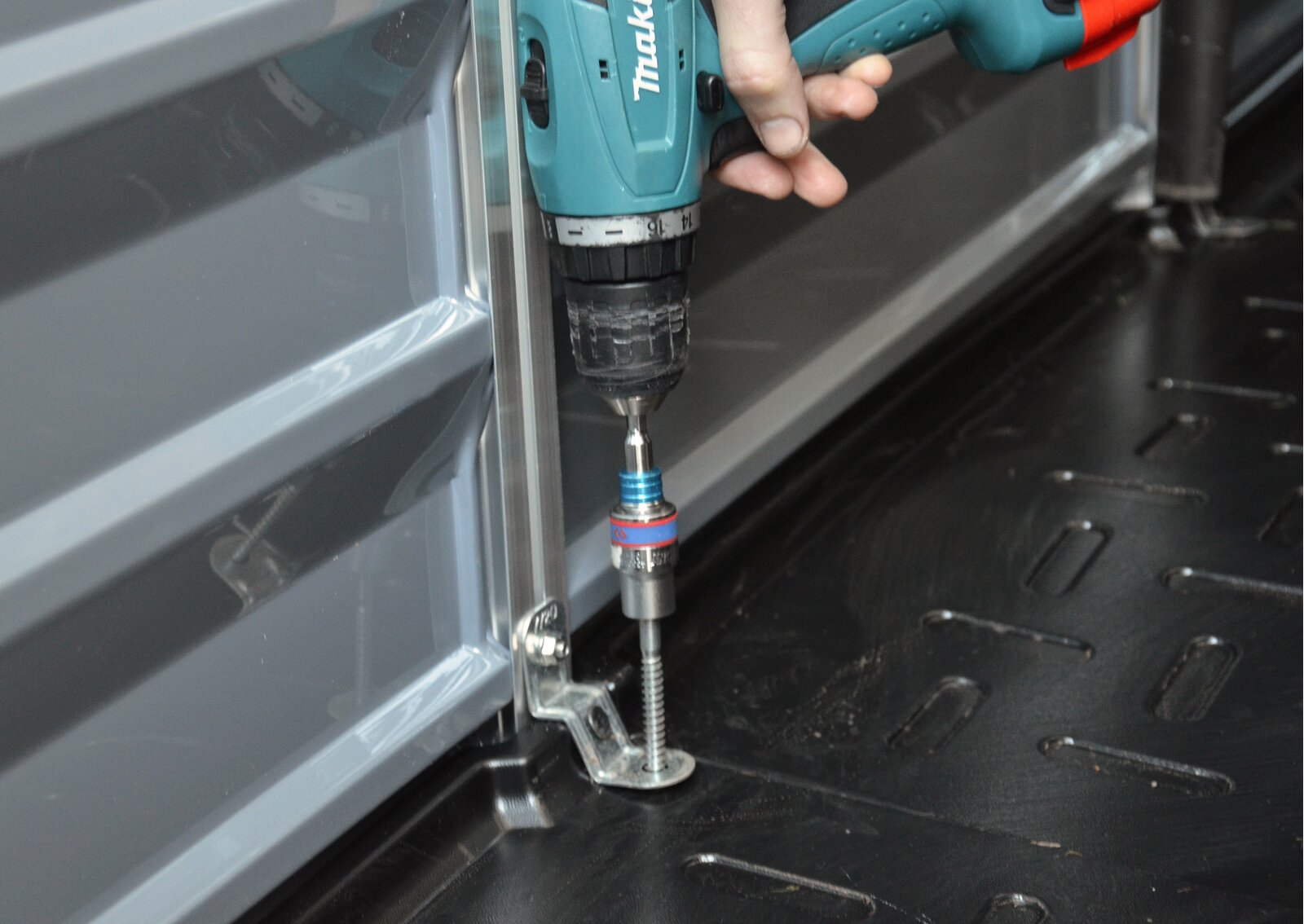 - Anchor the shed on to a solid surface, use suitable screws and plugs (screws and plugs not included)