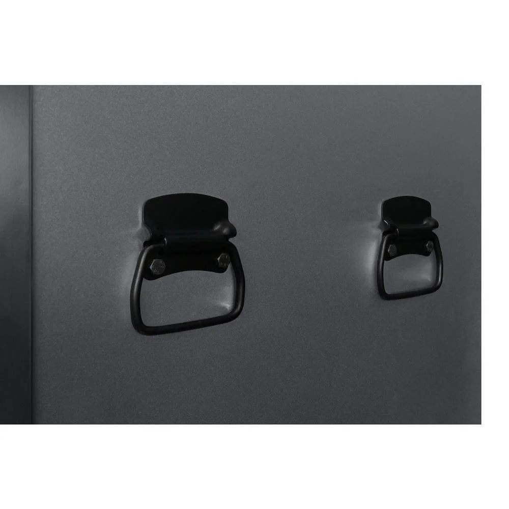 The Husky 80 in. x 10 drawer Garage Workcenter and Side Locker unit is a heavy duty, 19-Gauge steel, 3 piece tool storage unit that is rated for 3,000 lb. loading capacity. The 24 in. D garage chest features a garage lid that lifts up and slides into top unit as well as a pegboard and thick mat for a large workable area. This 3 piece unit also features 10 drawers and side locker creating 84,025 cu. in. of storage capacity. Drawers are equipped with 120 lb. rated soft closing slides. The extra deep bottom drawers and full length top drawer have double 120 lb. slides and provides convenient storage for larger and longer items. Premium drawer liners are included. The built in full length power strip includes 8 outlets and 2 USB ports in top cabinet and 6 outlets and 2 USB in side of bottom cabinet, making it easy to keep all of your tools charged. Also included is a rechargeable magnetic LED work light. This light charges via a USB connection, has 3 light modes, a recessed folding hook, and produces up to 360 Lumens. For added security, all 3 pieces are fitted with a barrel key lock system. The side locker bolts on to the side of the unit and is 19 in. W x 21 in. D x 71 in. H and features two adjustable shelves. This toolbox weighs in at 711 lbs. This unit has six 5 in. x 2 in. heavy duty industrial grade swivel casters with brakes and 2 non swivel. This 3-piece garage storage unit has 3,000 weight capacity and features a side locker with adjustable shelves.