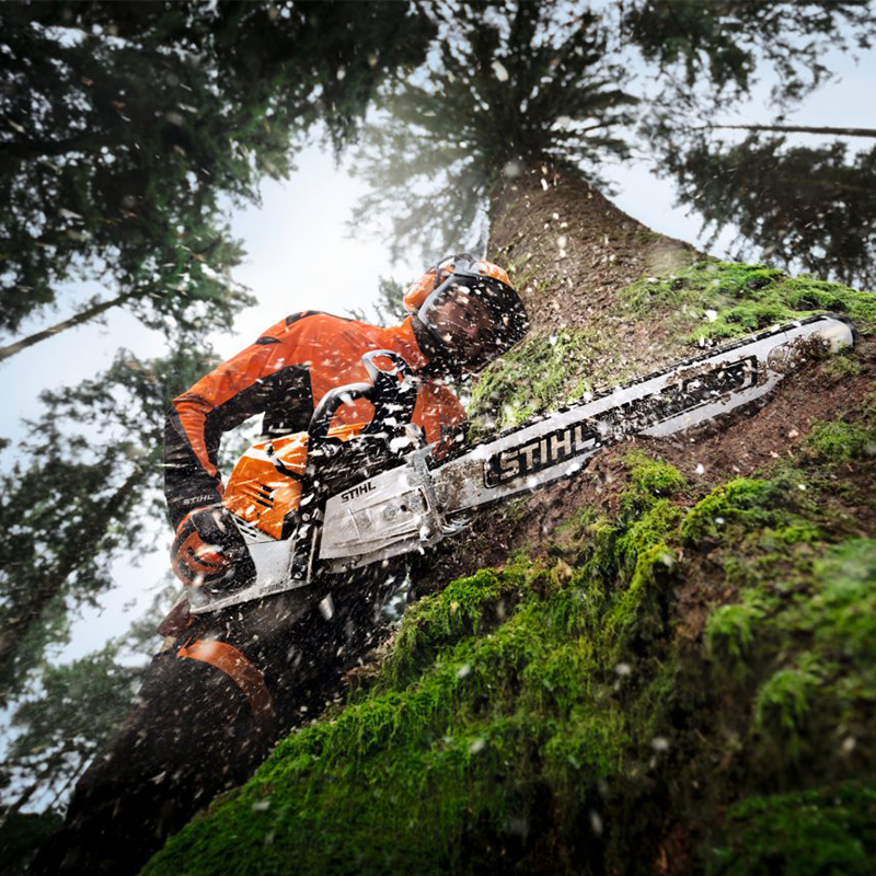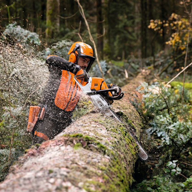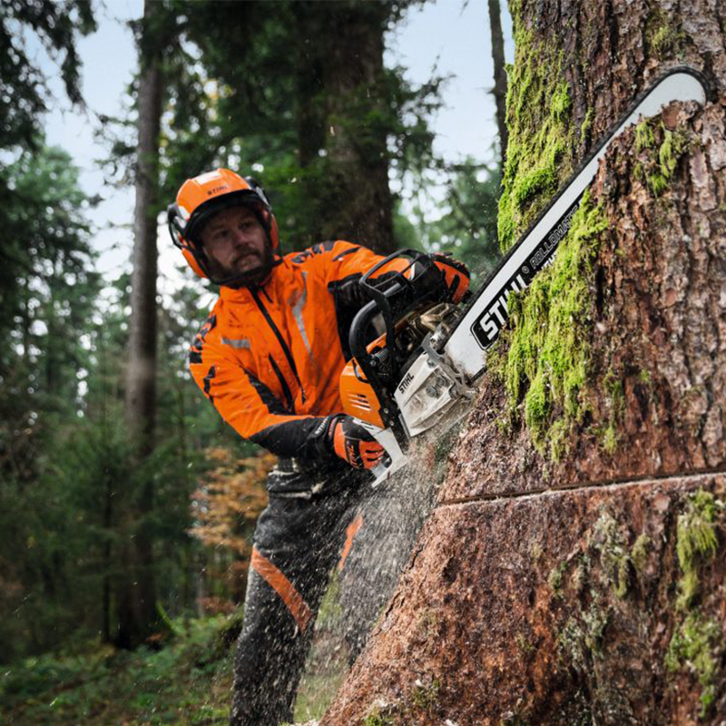 Die Benzin-Motorsäge STIHL MS 500i eignet sich optimal für Arbeitseinsätze in der Forstwirtschaft. Vor allem das Aufarbeiten von Starkholz lässt sich durch die starke Leistung und die gute Bedienbarkeit effizient durchführen. Dank Leichtbaukonzept und dynamischem Schwenkverhalten überzeugt die optimal führbare Motorsäge nicht nur beim Fällen und Ablängen, sondern auch beim Entasten.