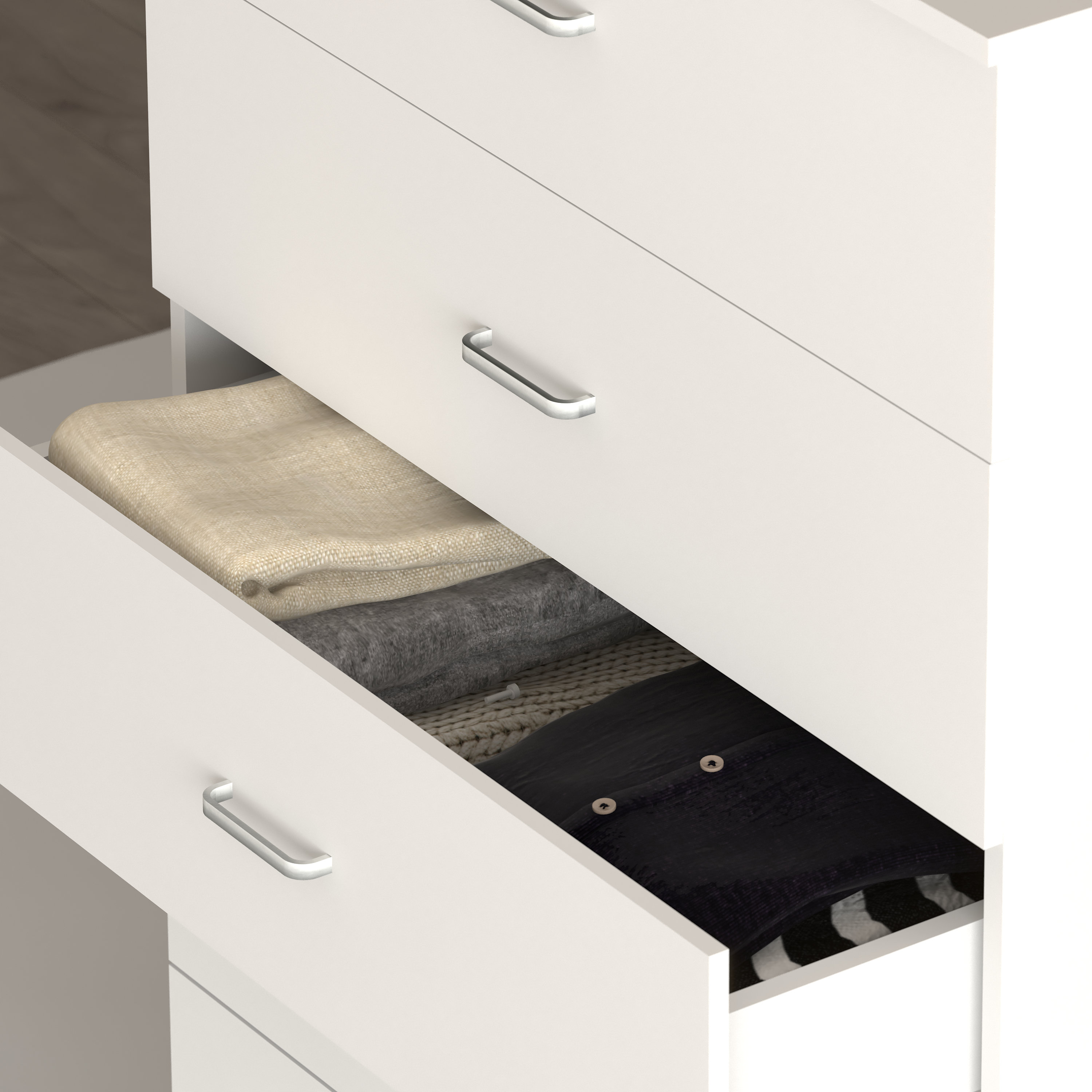 - Modern 5-drawer chest of drawers with a sleek, streamlined design
