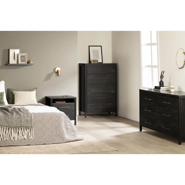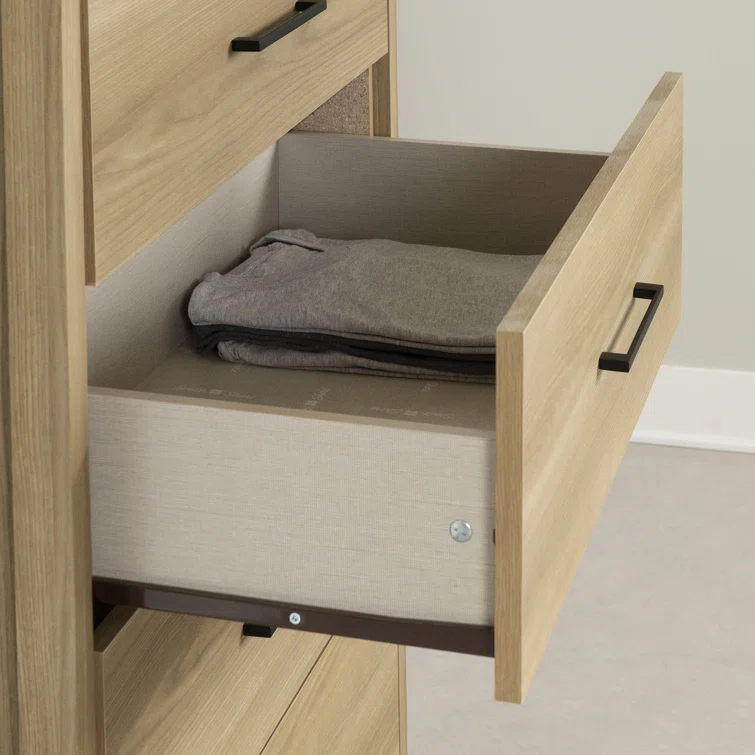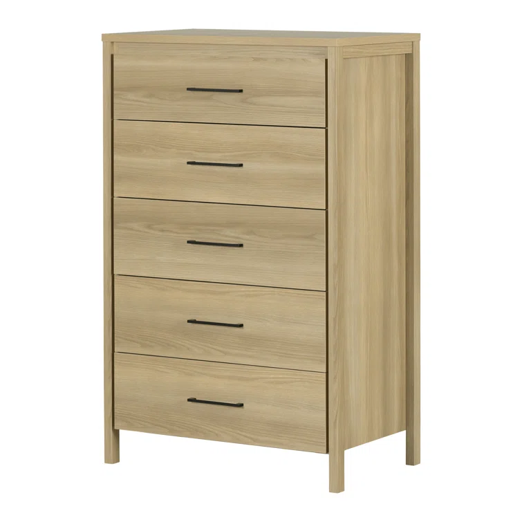 This chest of drawers is the perfect storage solution for bedrooms where space is tight! It features five wide drawers that are great for organizing your clothes and accessories the way you want. And since it’s made tall instead of long, it won’t give your bedroom that “crowded” look. You’ll have an airy, clean, well-organized room. We love the elegant Contemporary style of this piece. The squared legs and slim handles give it a very good-looking clean, minimalist look, which will stay trendy for many years. For an even more complete decor, put some frames and decorative accessories of your liking on its surface.