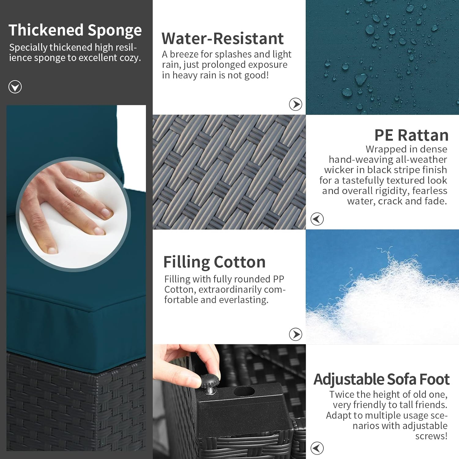 - Highly Adaptable: Patio conversation set includes armchairs, 3-seat sofa, ottomans, and storage table, styles coverage are diverse and unique. Depending on needs and better space utilization, various layouts and combinations are suitable for any decorative fashion and scene, indoors or outdoors. The table with storage allows storing multiple items for easy access anytime, is superbly convenient, greatly enriches your outdoor life.