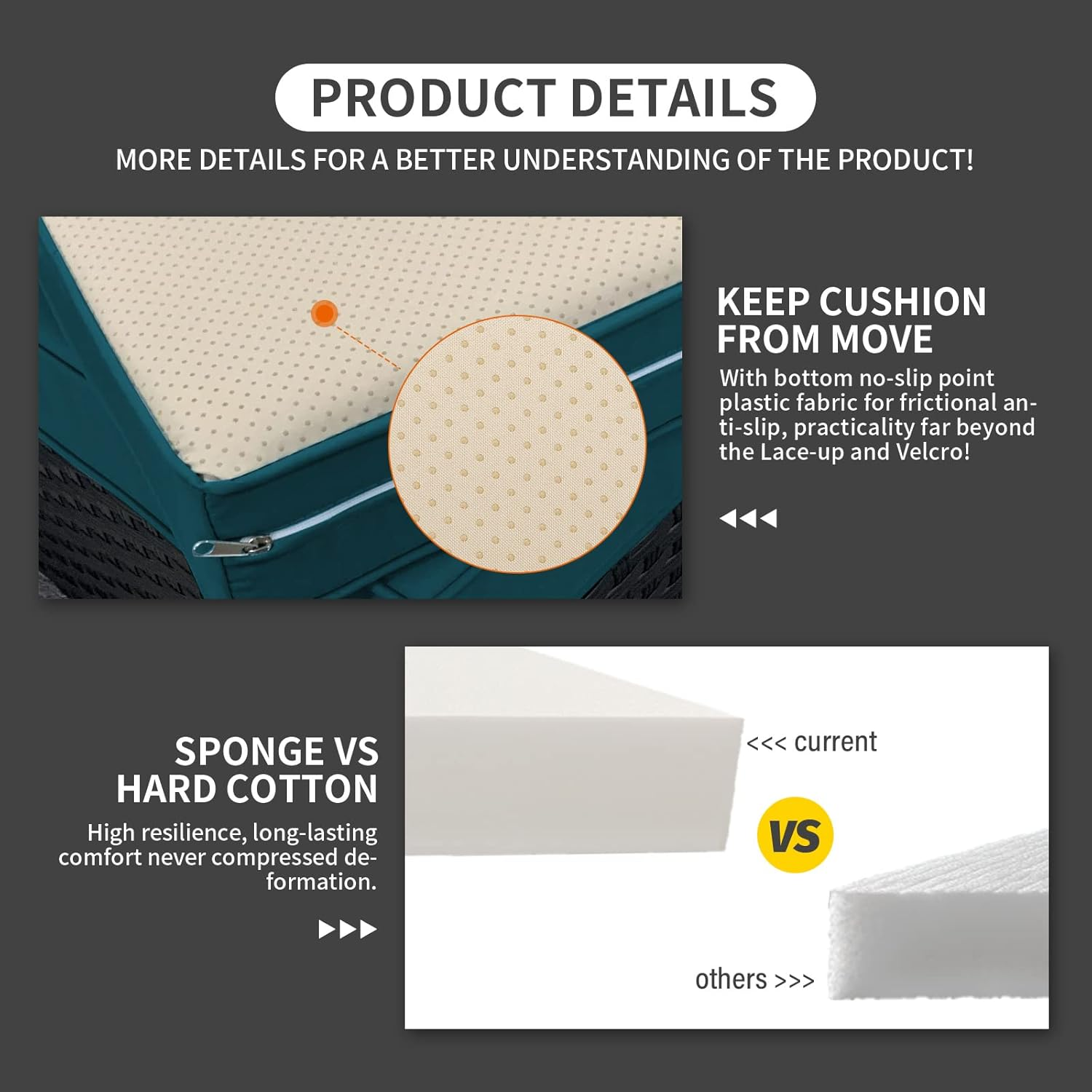 - Comfortable and Non-slip: thickened seat cushions(4 inches) with high resilience sponge and bottom anti-slip dotted plastic fabric, anti-slip, back cushions filling with PP cotton, which is extraordinarily comfortable and everlasting