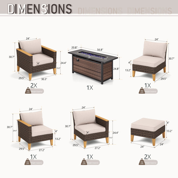| Pieces Included (Yes Firepit Included) | Sectional; Chair; Ottoman / Footrest; Fire Pit; Cushion(s) |
