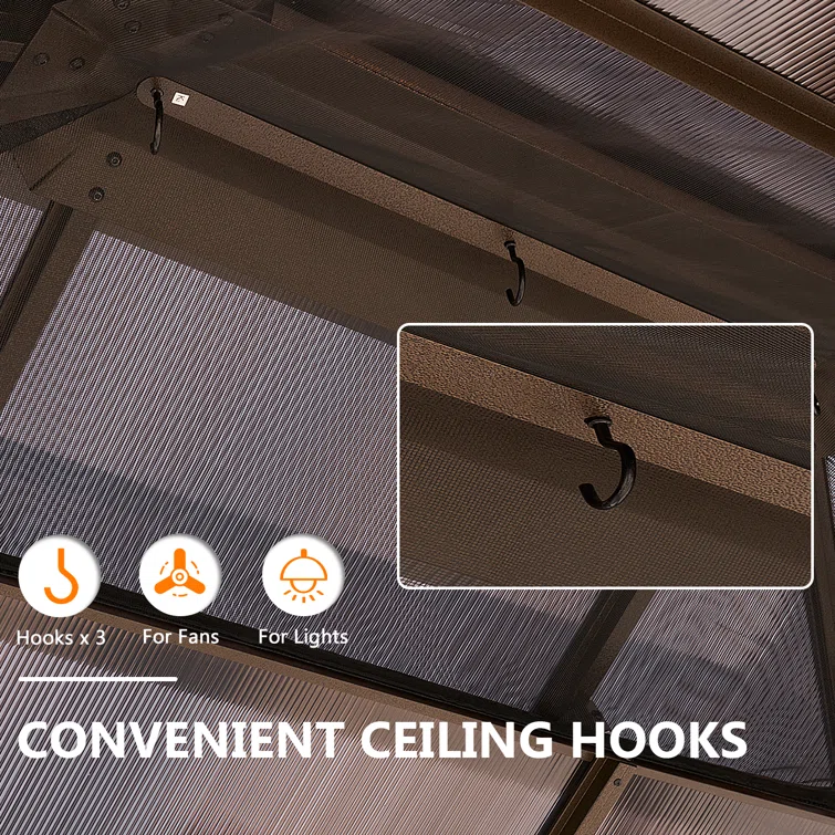 - Enhance stability and durability with our outdoor gazebo. The polycarbonate dual-layer roof boosts durability, ensuring resilience against winds, rain, and elements. Improve airflow and ventilation while protecting from harmful UV rays. Upgrade your outdoor space.
