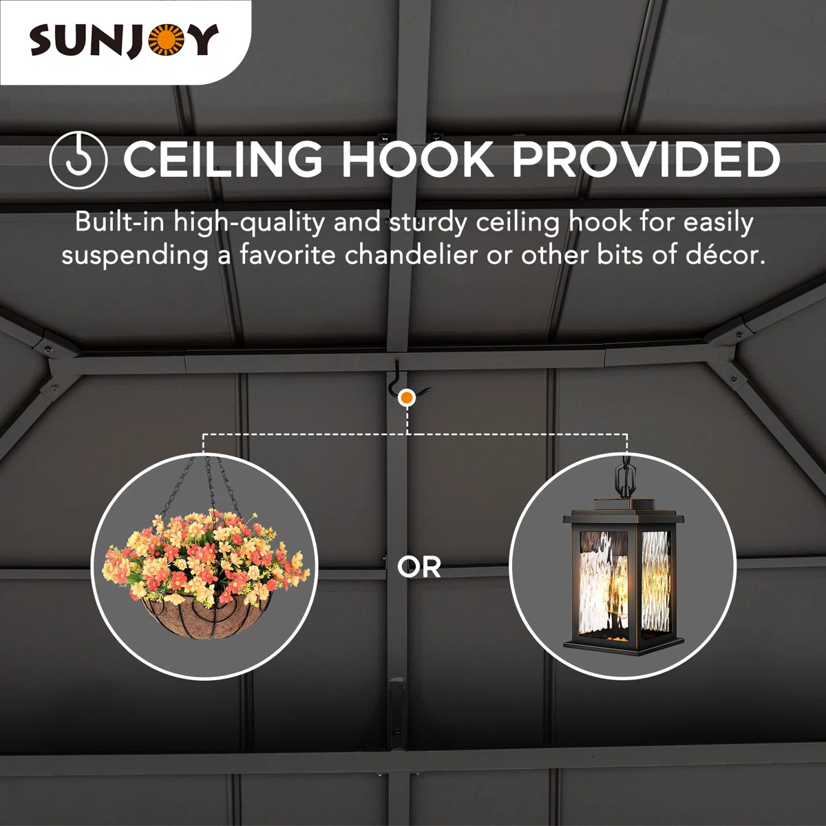- Light Up Your Outdoor Patio: A sturdy ceiling hook is provided for this cedar wood gazebo to suspend lighting (not included) and illuminate your evening gatherings.