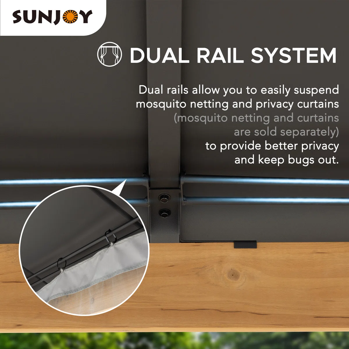 - Better Protection & Privacy: Featuring a built-in dual rail system that allows you to easily suspend mosquito netting and privacy curtains (mosquito netting and curtains are sold separately) to provide better privacy and keep bugs out.