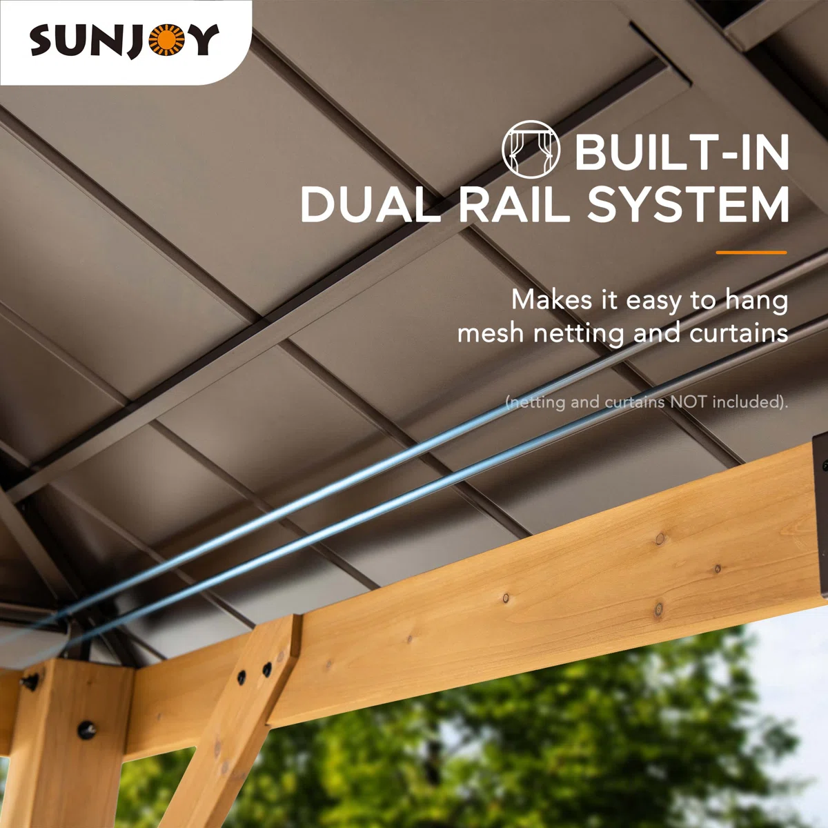With 24 years of experience, Sunjoy has established itself as a leader in the gazebo industry. We are proud to have sold over 10 million gazebos across North America, a testament to our dedication to innovation, quality, and customer satisfaction. Join the millions who have made Sunjoy a part of their outdoor lifestyle, and experience the quality and craftsmanship that define our brand. Expand your living space by bringing the indoors outside and create your end-of-the-day oasis that’s the perfect spot for entertaining family and friends. This 11x11 ft. gazebo by the world’s leading ready-to-assemble outdoor structure maker, Sunjoy, creates the perfect outdoor setting for any time of the year. Spend all four seasons enjoying a covered spot outdoors beneath a cedar wood frame and sturdy powder-coated steel and polycarbonate roof top that will stand the test of time. The polycarbonate skylight allows the gazebo to provide needed shade on hot sunny days while still allowing in natural light. Set the mood by suspending a chandelier from the incorporated ceiling hook for additional functional light and a touch of elegance. With straight-forward, easy-to-follow assembly instructions you’ll soon be enjoying your favorite new outdoor living space, and for years to come.