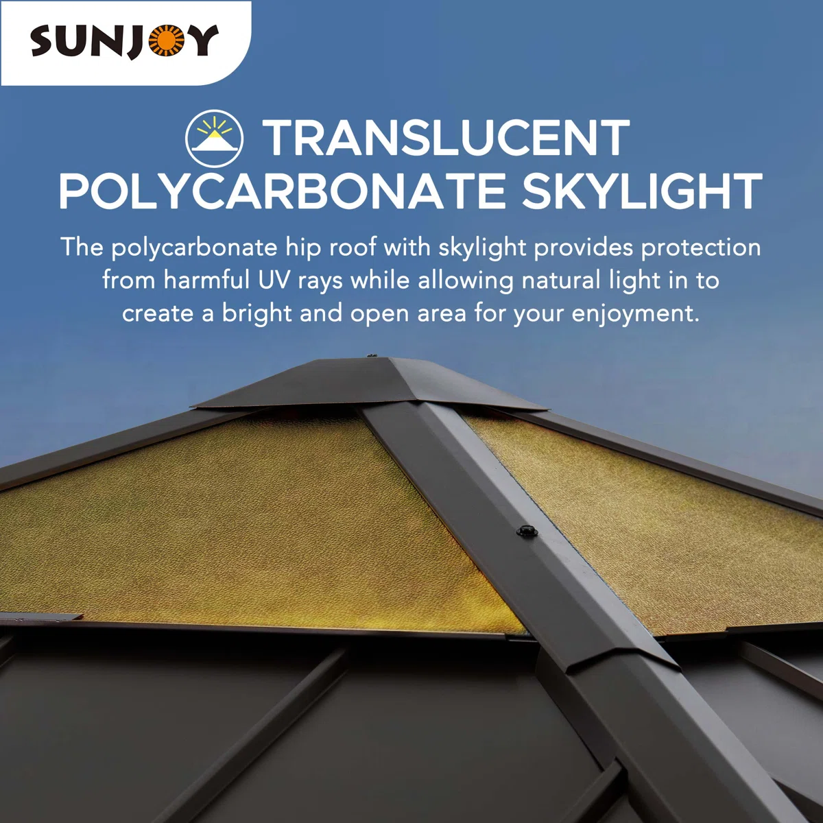 - Strong Resistance to Wind and Snow :The Sunjoy Gazebo features a robust frame and a steel roof, ensuring a stable structure that can effectively withstand strong winds and heavy snow. Its angled roof design accelerates the drainage of melted snow, enabling you to brave adverse weather conditions with ease.