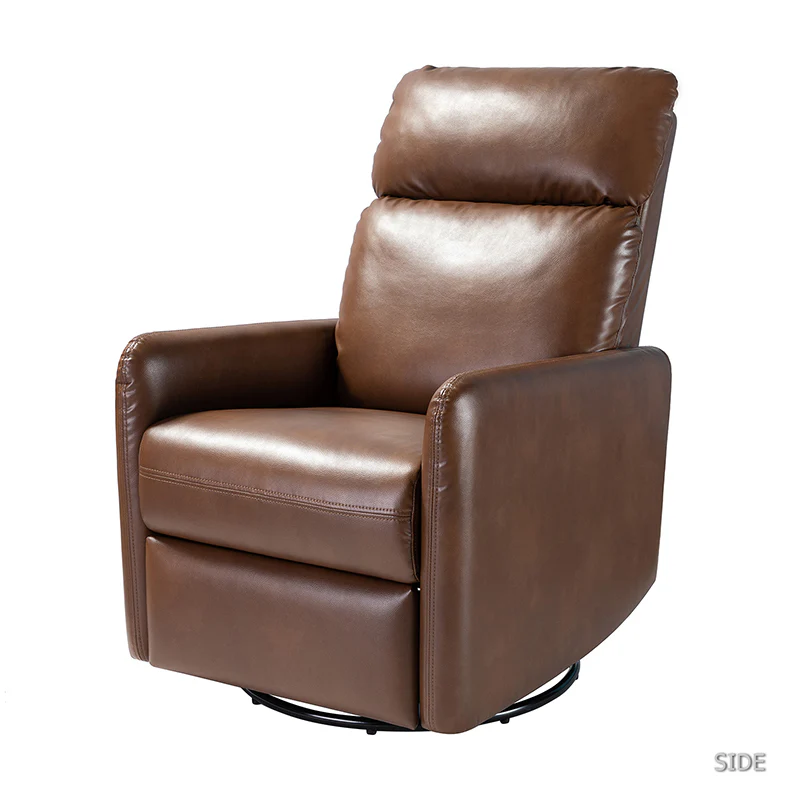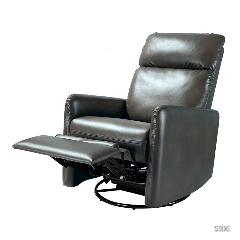 Choosing supple and smooth polyester fabric, the elegant swivel recliner will feel right at home in a highly styled sitting room with antique accents and stylish touches. Crafted from solid and manufactured wood, this swivel recliner shows a modern appearance for simple yet fashionable charm in any living room. This swivel recliner with a tufted backrest and metal base exudes ultimate ease and comfort when both upright and in the reclining position, while the built-in pocket spring provides excellent support capacity. Plus, this recliner decorated has a manual button on the side that offers two positions for maximum relaxation. Whether you're adding to an existing seating group or creating a new one, this swivel recliner will be a tasteful addition to your space.