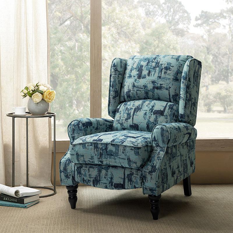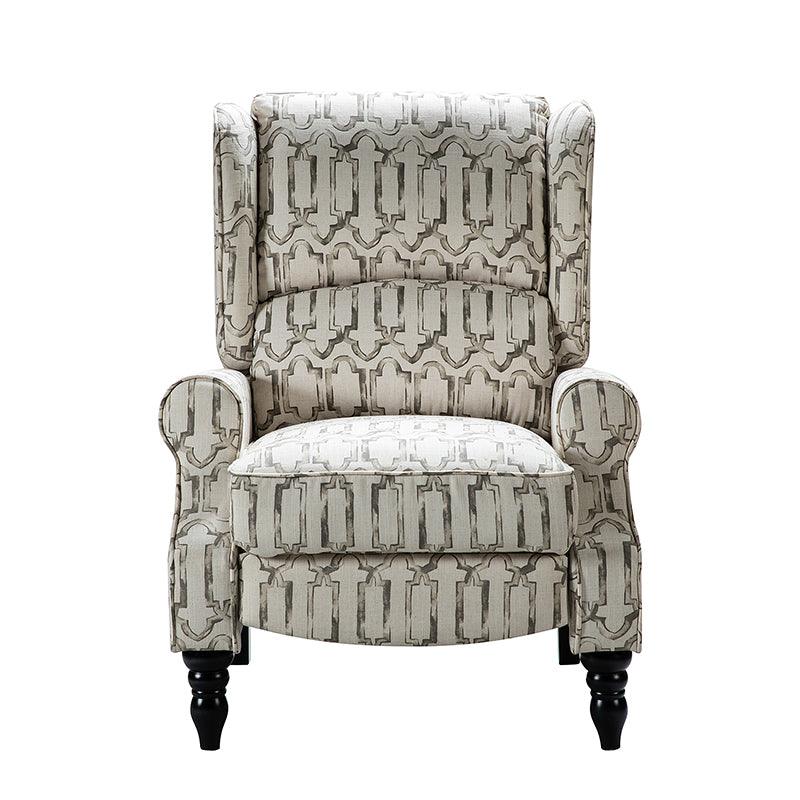 When it comes to elevating your living room look or accenting the master suite, this modern wingback recliner is the perfect spot to unwind. This chair with two cushions padded backrest and a foam-filled frame exudes ease and comfort when both upright and in the reclining position, while the built-in pocket spring and sinuous spring provide excellent support capacity. Crafted from solid and manufactured wood while offering several different fabric choices, this textured manual-adjusted recliner shows a modern appearance for simple yet fashionable charm in any living room. With optional patterns and creative colors that meet your demands, its retro-carved rubber legs bring you endless reverie. Simply recline the back with the hidden footrest, it helps to relax your joints after a long day of work, perfect for living room, media, and master bedrooms.
