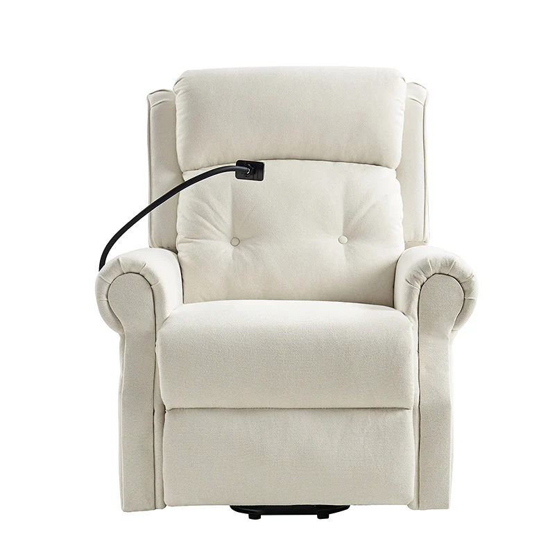 This farmhouse-inspired recliner seamlessly transitions from the living room to the bedroom or office, embodying traditional charm with modern amenities. Crafted with a power recliner and lift assist function, it offers unparalleled comfort and convenience. Indulge in relaxation with the massage setting and heating feature, while the rear foot universal wheel ensures both mobility and stability. Its adjustable mobile phone holder and manually adjustable headrest cater to individual preferences. Adorned with an imitation linen fabric, it includes a storage bag and USB port for added functionality. This recliner harmoniously blends rustic aesthetics with contemporary technology, making it a versatile and luxurious addition to any space.