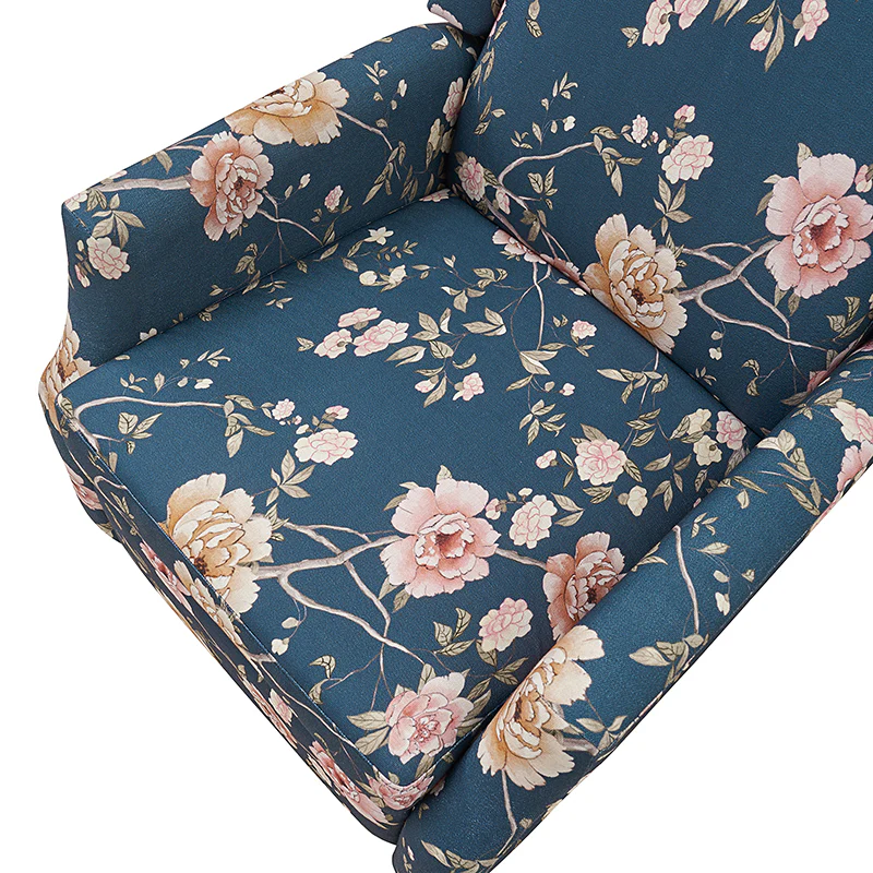This recliner boasts a distinctive design with a captivating blend of faux leather and floral fabric, creating an artistic and stylish appearance. The high-quality materials include easy-to-clean and maintained PU leather. Its versatile features encompass swivel, rocking, and reclining capabilities, providing a multifunctional and comfortable seating experience. Embracing a traditional style, the unique wingback design is adorned with nailhead accents, complemented by shaped track arms for added elegance. The durable structure, meticulously crafted from sturdy wood and metal, ensures longevity and stability. This recliner harmoniously combines aesthetic appeal with functionality, offering a tasteful addition to any living space.
