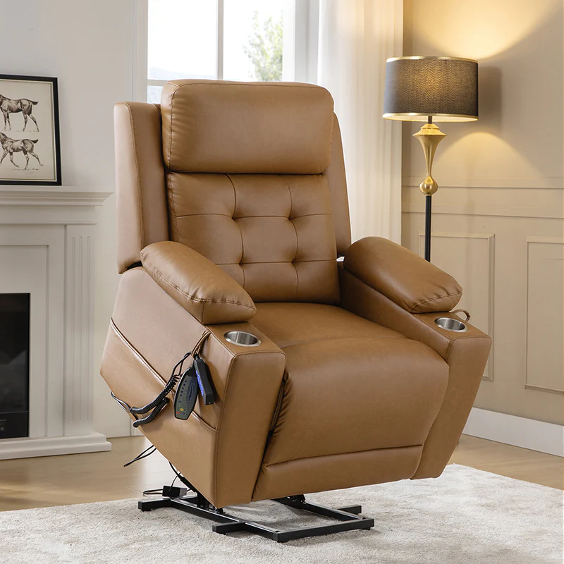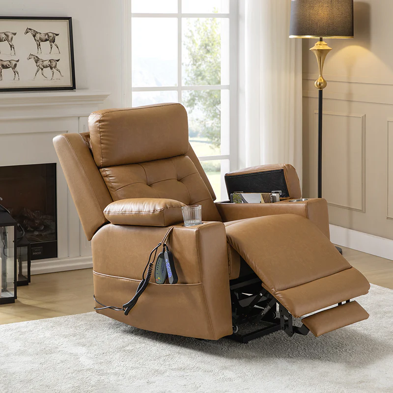 This power recliner is expertly crafted to provide unparalleled comfort and support, with the elderly in mind. Its advanced power electric lift function ensures effortless assistance when standing up. The recliner boasts a mid-century modern design with a tufted pattern and an oversized seat, offering an extra level of relaxation.