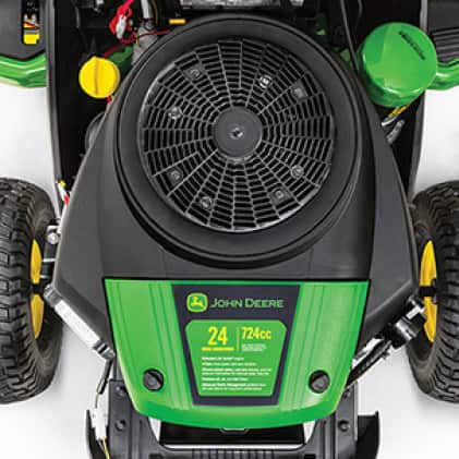 24 HP V-twin John Deere branded engine for stronger performance