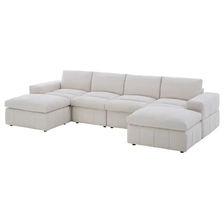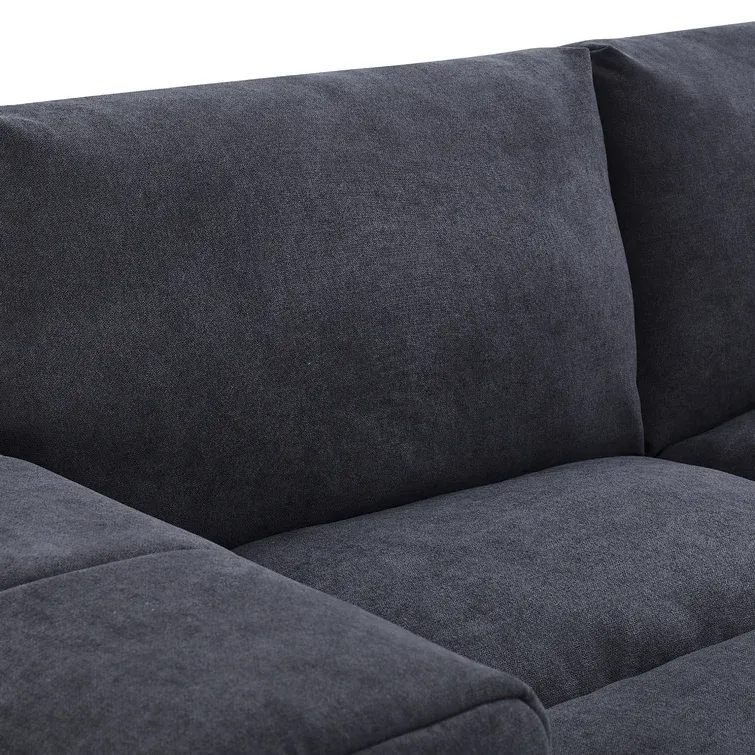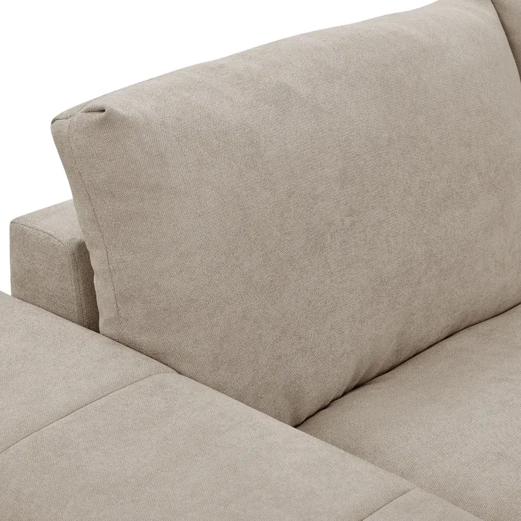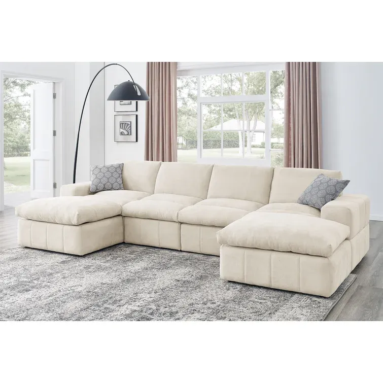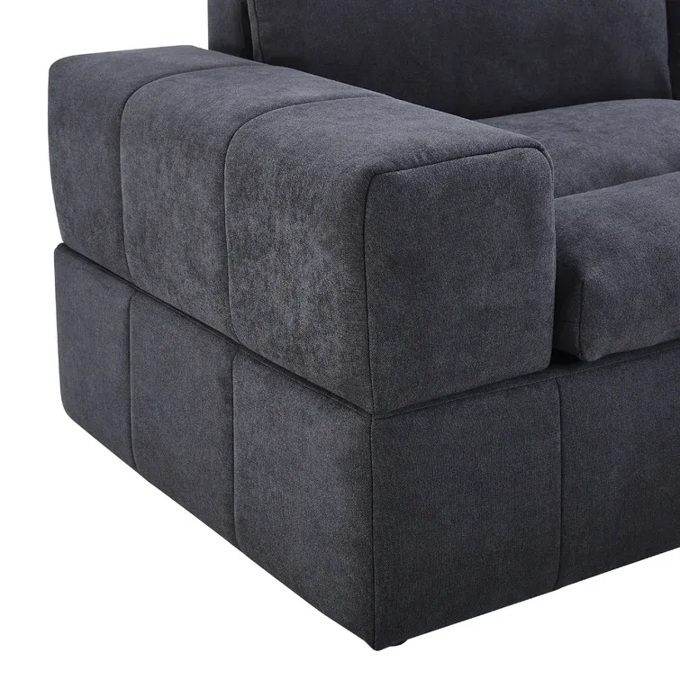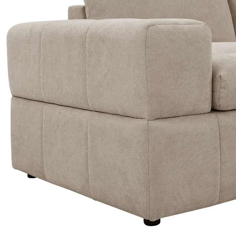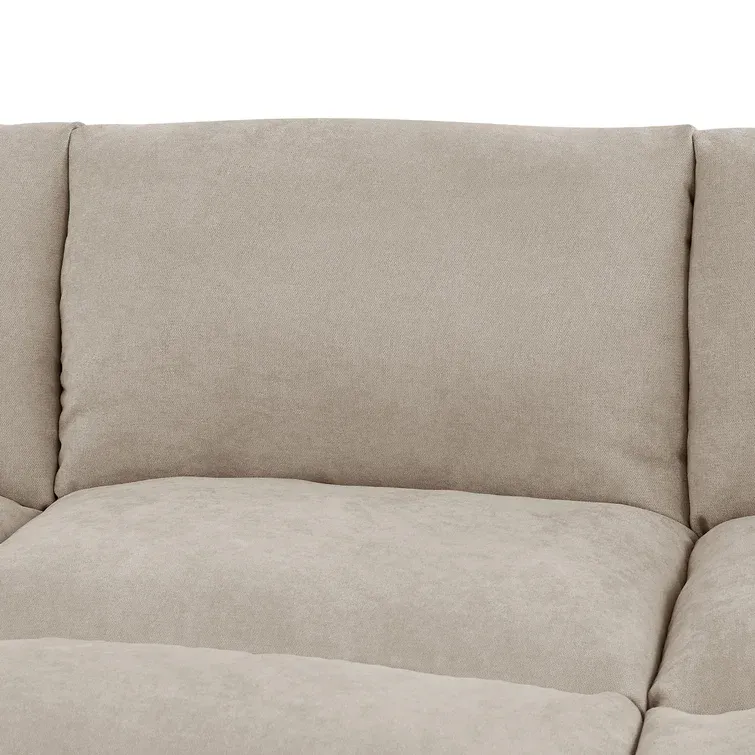 This modular sectional lets you create a sofa arrangement that’s just right for your living room. It comes with two ottomans and four seating segments that connect to each other with metal brackets in any shape you like. This couch is made from engineered wood and upholstered in foam-filled polyester microfiber. It has pocket spring seat construction for firm support. We love the way its cushion back and blocky square arms give it an invitingly modern look. Plus, it comes with two throw pillows, so it’s styled and ready for afternoon naps and family movie nights.