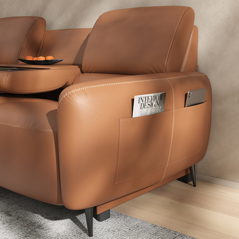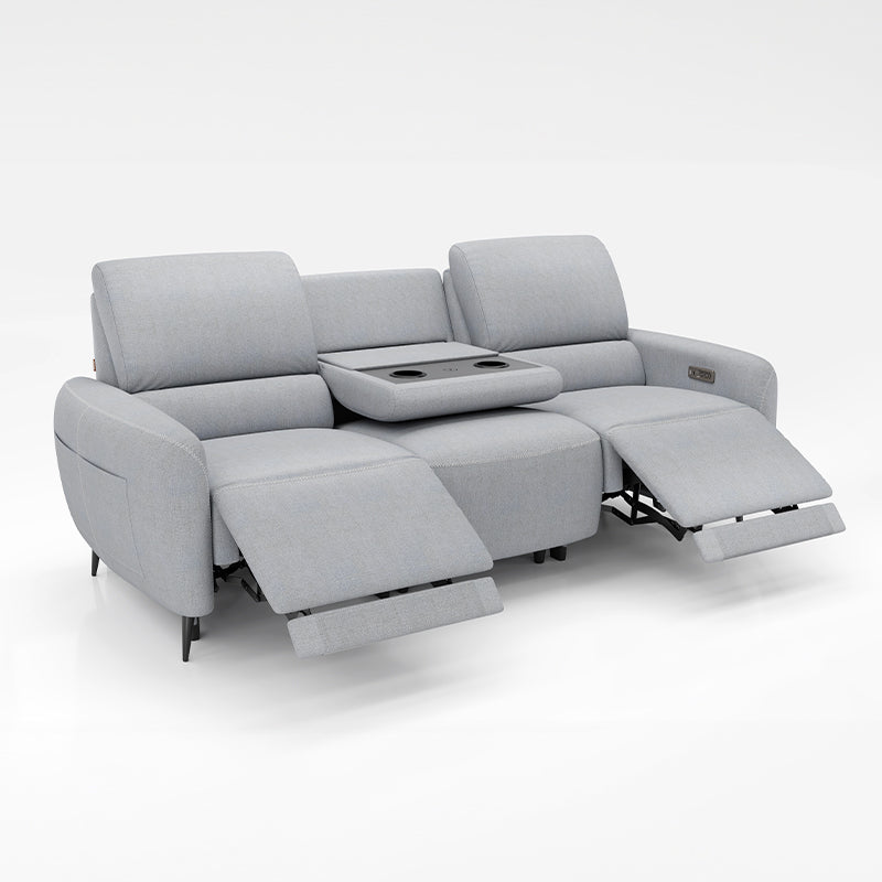 Integrated Power System: The electric system features one outlet that powers the entire 3-seater power recliner sofa, supplying energy for reclining controls and USB and Type-C charging ports on the armrests. Additionally, wireless charging on the drop-down tray keeps all your devices powered effortlessly.