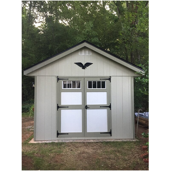 feature Shed type storage room Main material solid wood material details 2x4 Wall Framing with LP Smartside Siding Paintable Yes wood species not applicable colour tan primer cladding style overlapping storage 780 cubic feet need foundation Yes Include base Do not Recommended base size 120"W x 144"D including floors Do not including windows Yes number of windows 2 function window Yes including window locks Yes Includes built-in shelves Do not including door lock Yes including ventilation Yes including shingles Do not including blinds Yes Including flower box Do not Gate count 2 door style single door; double door Use all year round Yes wind level 90 Weather resistance Yes water proof Yes Corrosion resistant Yes mildew proof Yes Compatible Floor Kit Part Numbers 10X12EZFL Compatible Weathervane Part Numbers Cup 16wv6 Compatible flower box part numbers FTMW1002 Supplier Intended and Approved Uses residential use