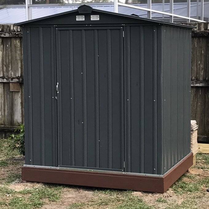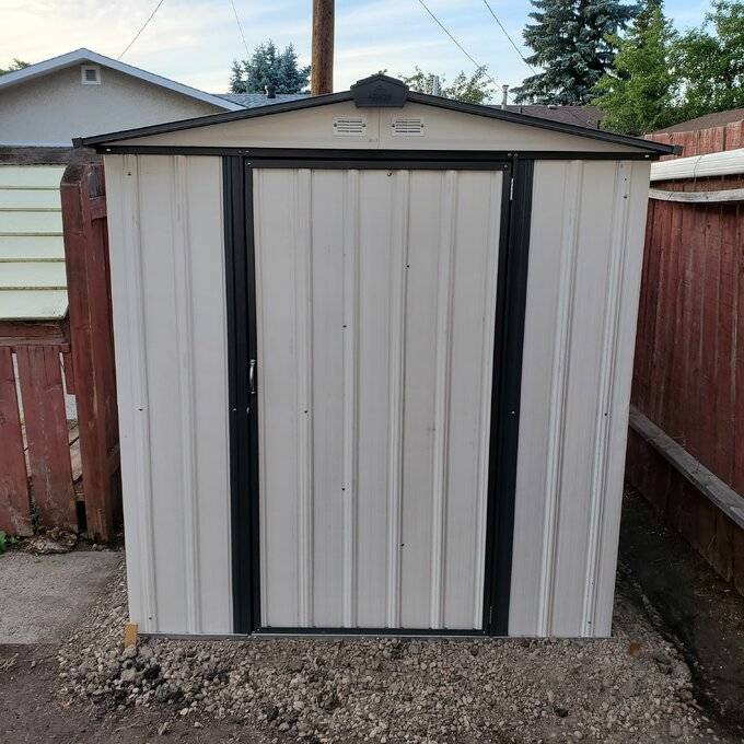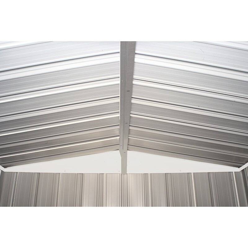 Description Introducing the EZEE Shed from Arrow Storage Products-a shed that builds in half the time. The EZEE Shed is a galvanized steel shed that is durable and made to last. It features the revolutionary Snap-IT Quick Assembly system that cuts assembly time down by 50% compared to most steel sheds on the market today. The EZEE Shed has a reduced number of fasteners across walls, roof, and doors and there are no more difficult nut/bolt connections-so assembly is faster and easier! The EZEE Shed features a design that is 2x stronger than leading steel sheds on the market. Its unique panel geometry is more impact resistant, and with its overlapping Snap-IT panels that connect every 12 inches, it a stronger overall building design. The EZEE Shed also features improved roof assembly that allows for ground assembly of the roof for easier and faster roof attachment. The EZEE Shed is not only a tougher shed with faster assembly, it's a more modern and attractive take on outdoor storage sheds, too! The EZEE Shed is available in an updated color pallet that makes it a modern and stylish storage solution for the backyard, patio, and garden areas. The EZEE Shed doesn't just look better; it offers better storage space, as well. The EZEE Shed's attractive swing door design allows for easier access to your items and features a heavy-duty framed out design. The doors are set on 3 hinges for extra durability. The EZEE Shed is a strong and modern alternative to your standard backyard shed, and the next step up in steel shed assembly and design. What's Included? Ventilation Door Lock Shed Single Door Floor Foundation Features Snow load: Not available Product Details Storage Capacity: 140.25 cubic feet Additional Tools Required (Not Included): See Manual