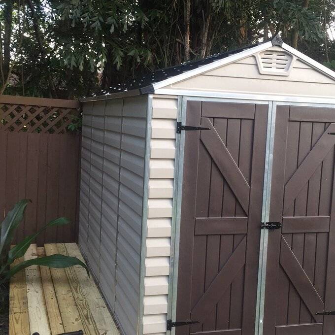 The Palram SkyLight™ Shed Tan/Brown is perfect for storing, organizing and protecting your outdoor life. Made with Palram's virtually unbreakable polycarbonate and reinforced aluminum frame, the SkyLight™ Shed will provide years of maintenance-free protection. Prior to installation, the polycarbonate panels may seem lightweight and flexible, but once assembled, the shed will be rigid and durable. With your storage needs in mind, the SkyLight Shed will help you to maintain your home environment and enhance your outdoor living space.