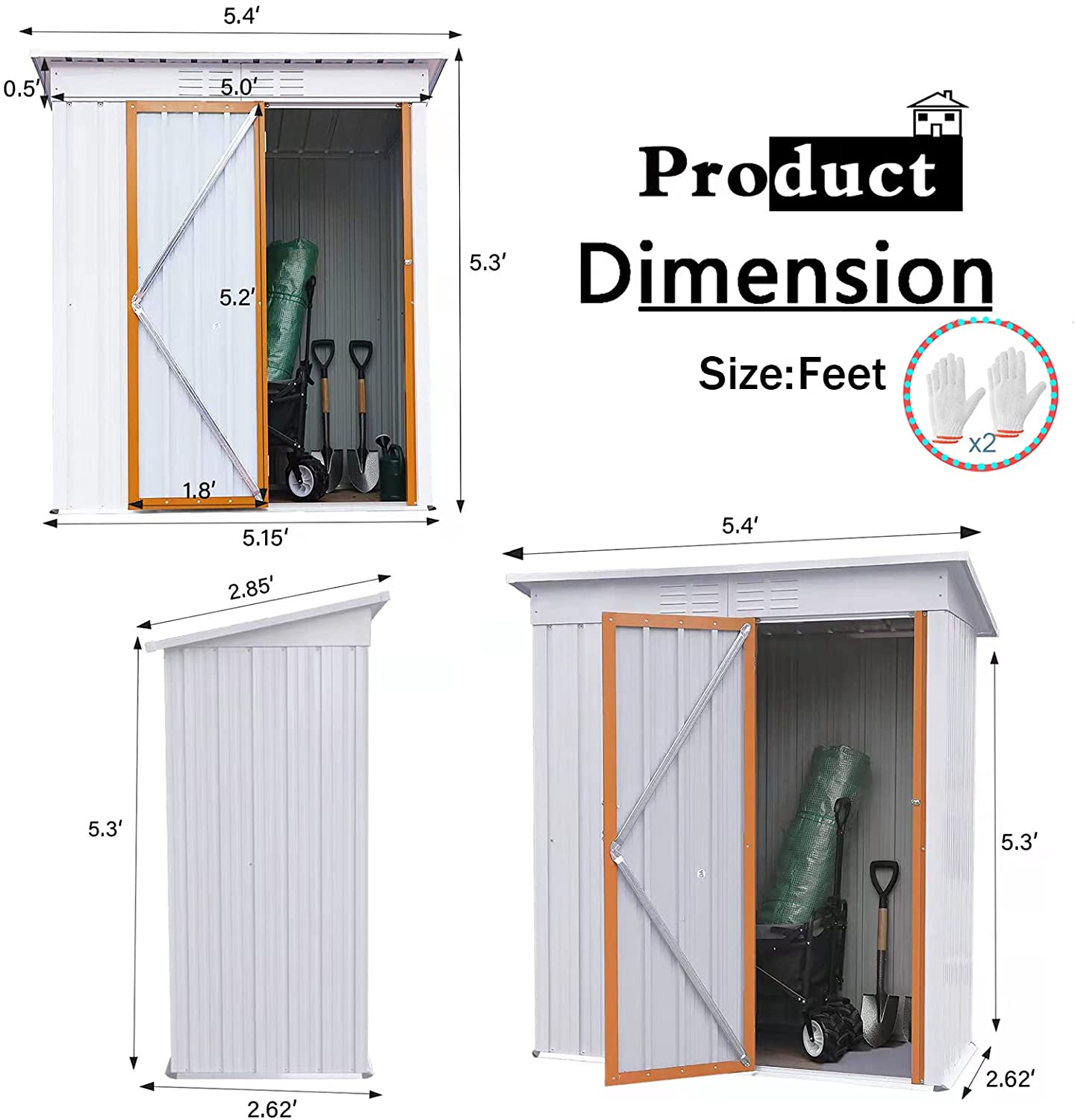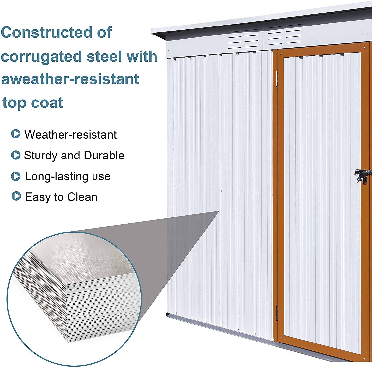 【DURABLE AND Sturdy Storage Shed】: Durable construction with galvanized steel reinforcement makes this durable shed rust and UV resistant. Overlapping siding is waterproof and moisture resistant and can be used in any weather condition.
